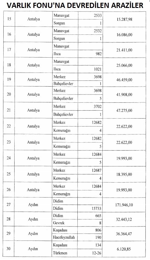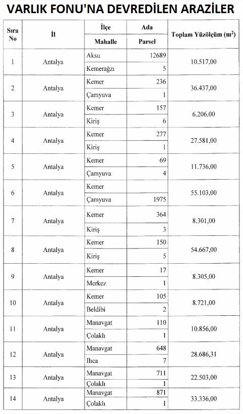 – Antalya’nın Aksu, Merkez, Kemer ve Manavgat ilçelerinde 700 bin 910 metrekare