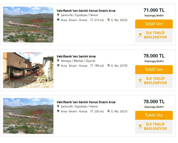 Vakıfbank tarla ve arsa ilanları kaç TL?